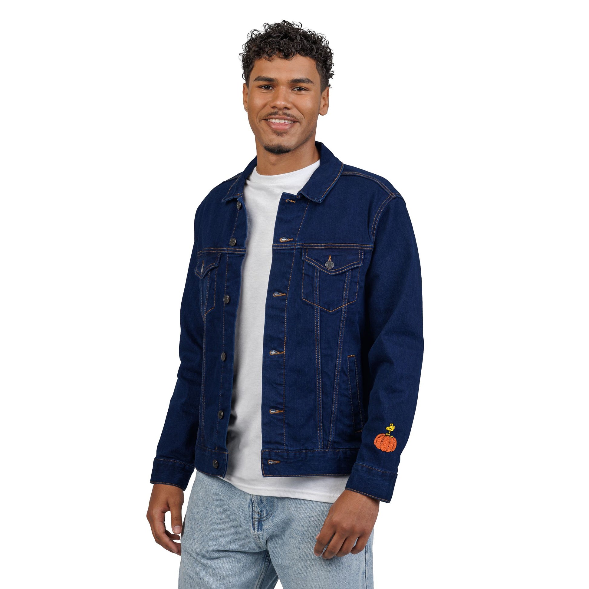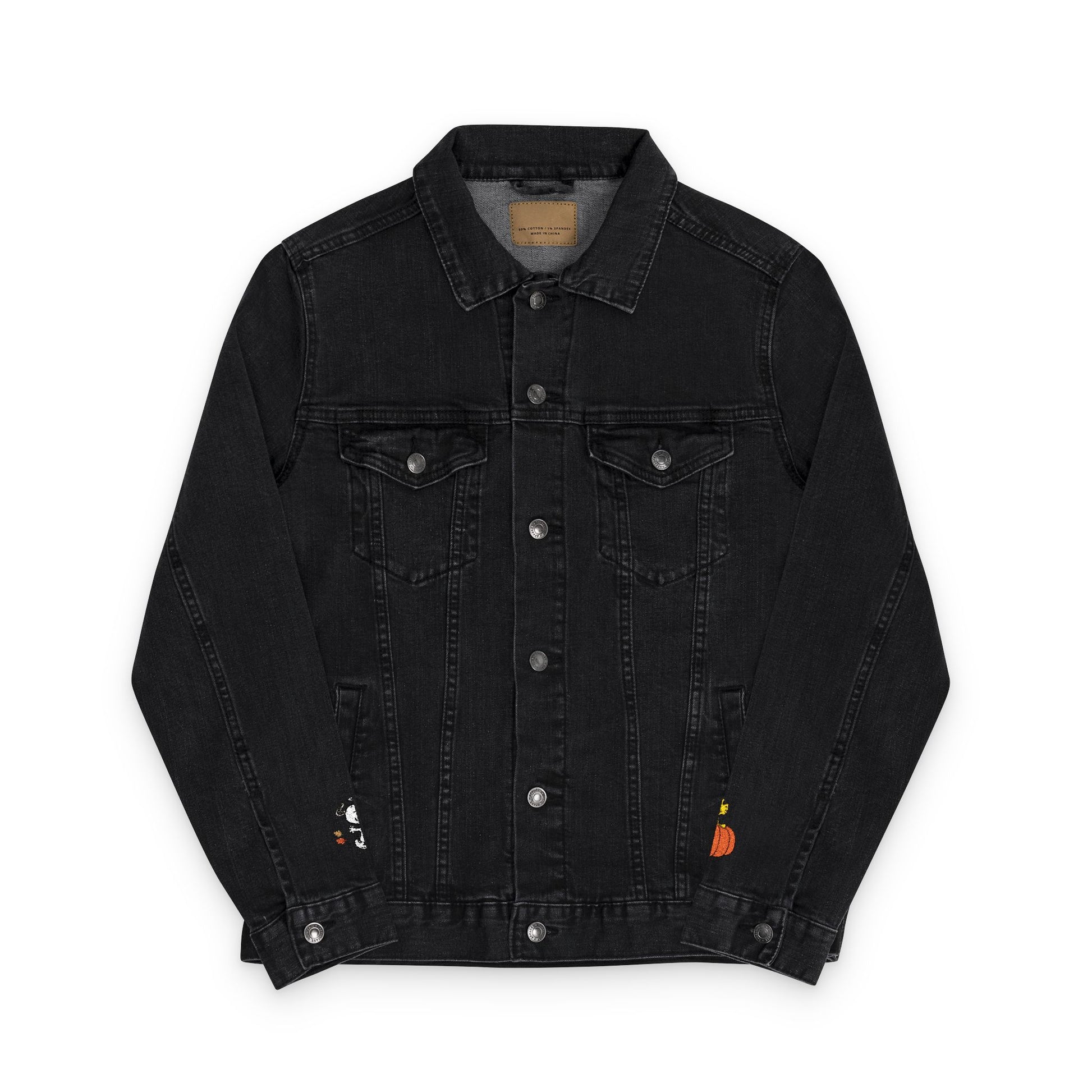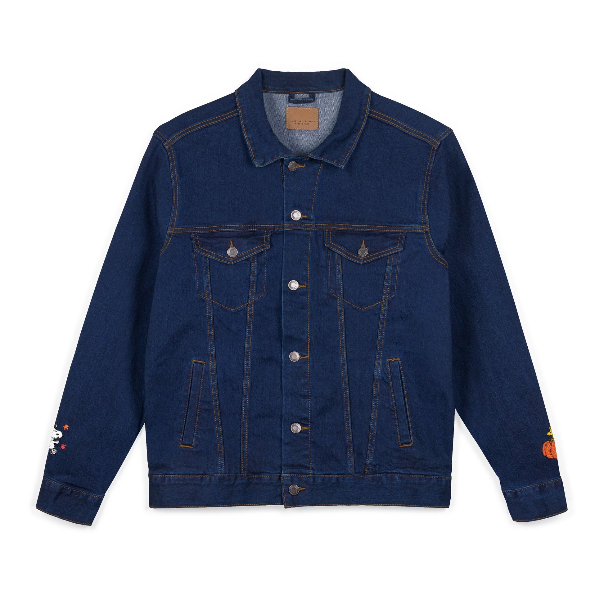 Fall theme denim jacket featuring snoopy characters, perfect for adding a touch of nostalgia and coziness to your wardrobe. Ideal for Snoopy fans and those who love autumn vibes. Perfect for casual outings or layering during chilly weather. Great for Halloween and Thanksgiving celebrations.